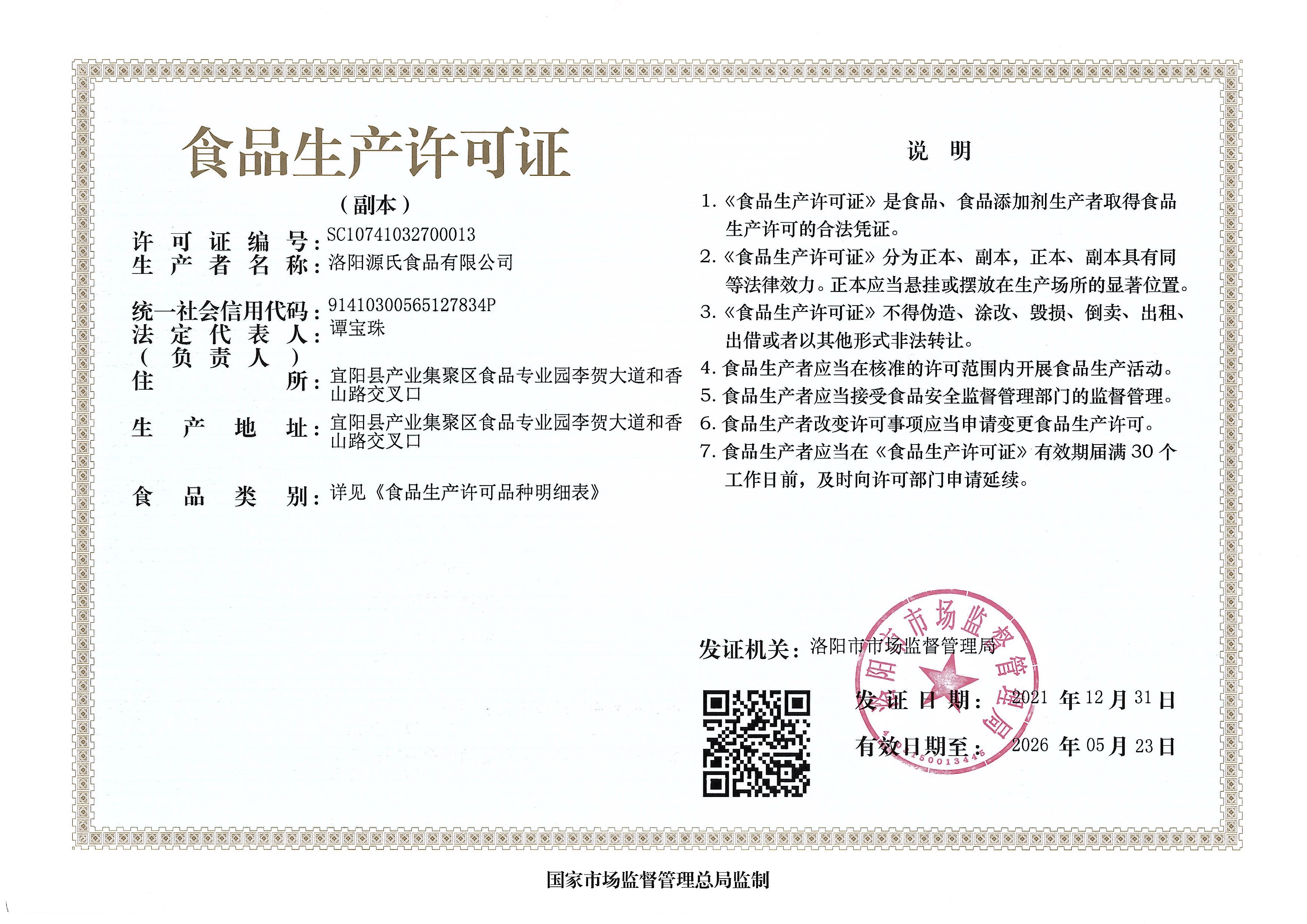 源氏食品生產許可證及細節列表